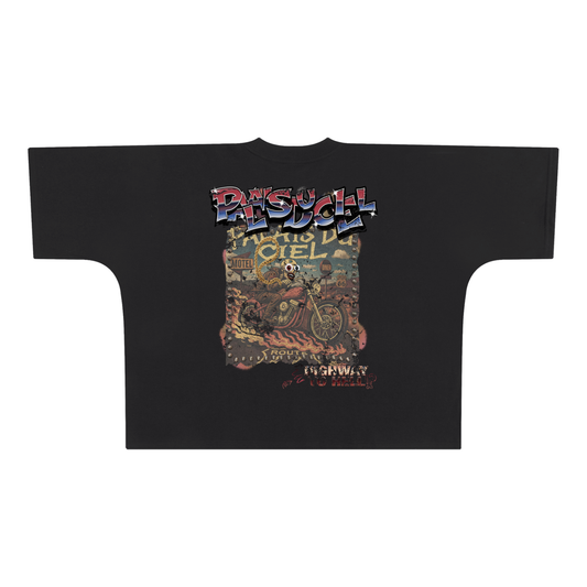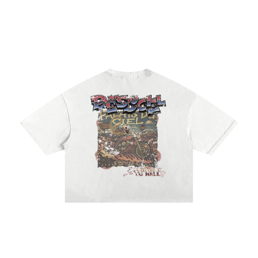 A BLAZING SKELETON ON A MOTORCYCLE / PALAIS DU CIEL BOXY T-SHIRT