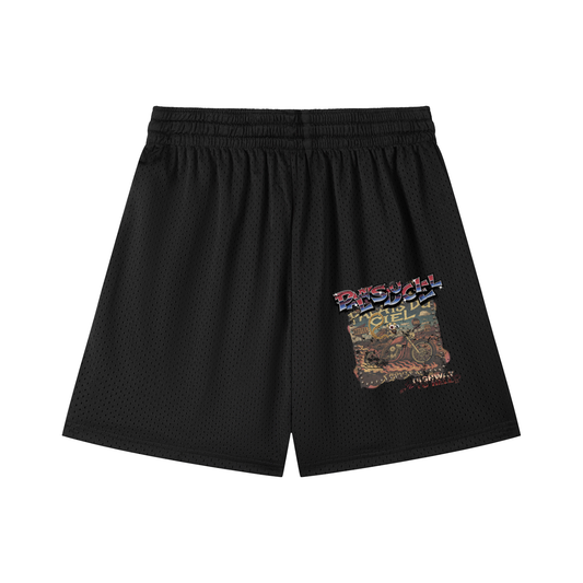 A BLAZING SKELETON ON A MOTORCYCLE / PALAIS DU CIEL MESH SHORTS