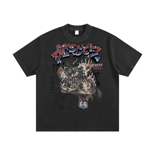 A BLAZING SKELETON ON A MOTORCYCLE / PALAIS DU CIEL BOXY T-SHIRT
