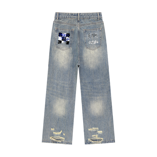 A ACID WASH CHECKERBOARD / PALAIS DU CIEL VINTAGE DENIM JEANS